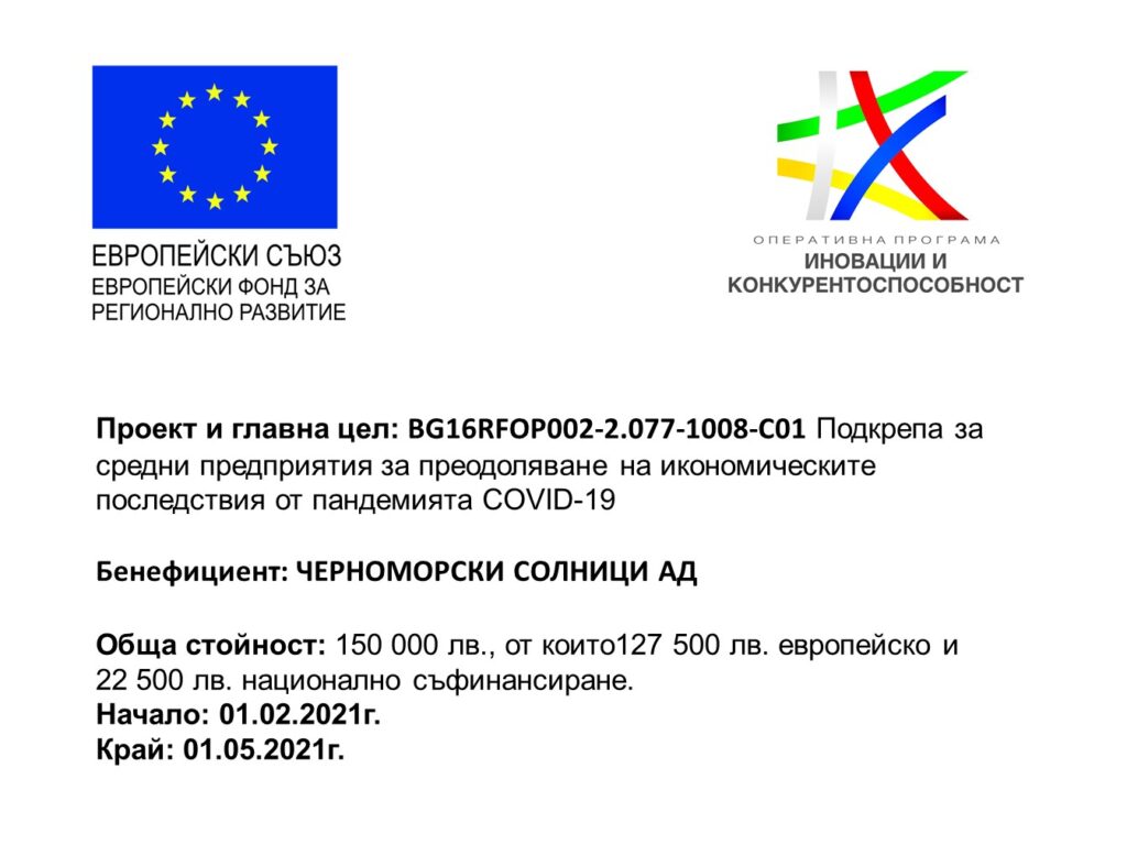 Наименование на проекта: Подкрепа за средни предприятия за преодоляване на икономическите последствия от пандемията COVID 19